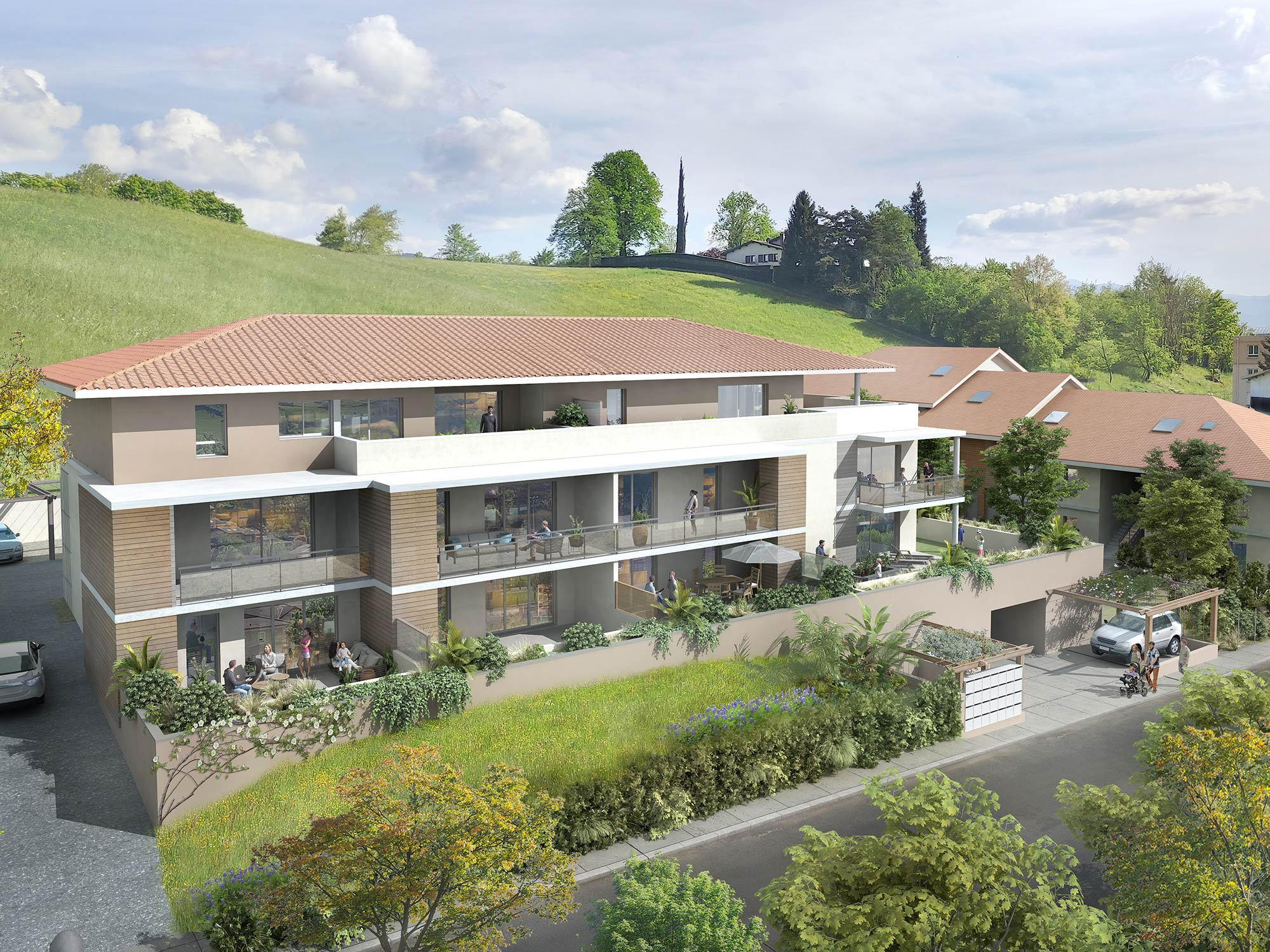 Appartement T4 duplex neuf au dernier étage de 100,90 m2 avec 16,55 m2 de balcon dans une résidence sécurisé et moderne à deux pas du centre ville de Saint-Marcellin.