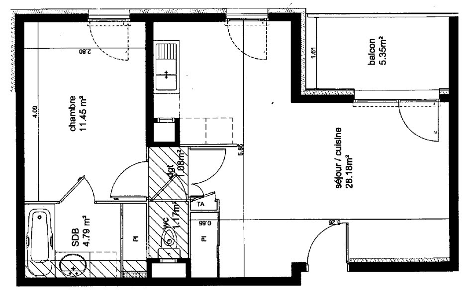 Grenoble rue claude genin appartement T2 de 47 M2 situé au 3ème étage sur 4 d'une copropriété calme et sécurisée de 2010, possibilité d'un grand garage de 16 m2 en sous-sol en sus. iLcomprend un séjour spacieux de 28 m2 avec cuisine ouverte donnant sur une petite terrasse de 5 M2 agréable à l'est vue belledonne, placard de rangement à l'entrée, une chambre, wc indépendant, salle de bains avec baignoire et placard, volets roulants électriques, chaufage collectif avec sous-compteur, local vélos dans la résience.Ce bien est vendu loué, bail jusqu'au 25.01.2027 (loyer 785 euro CC (eau froide et chaude chauffage) .proche de tous commerces, université, autoroute.