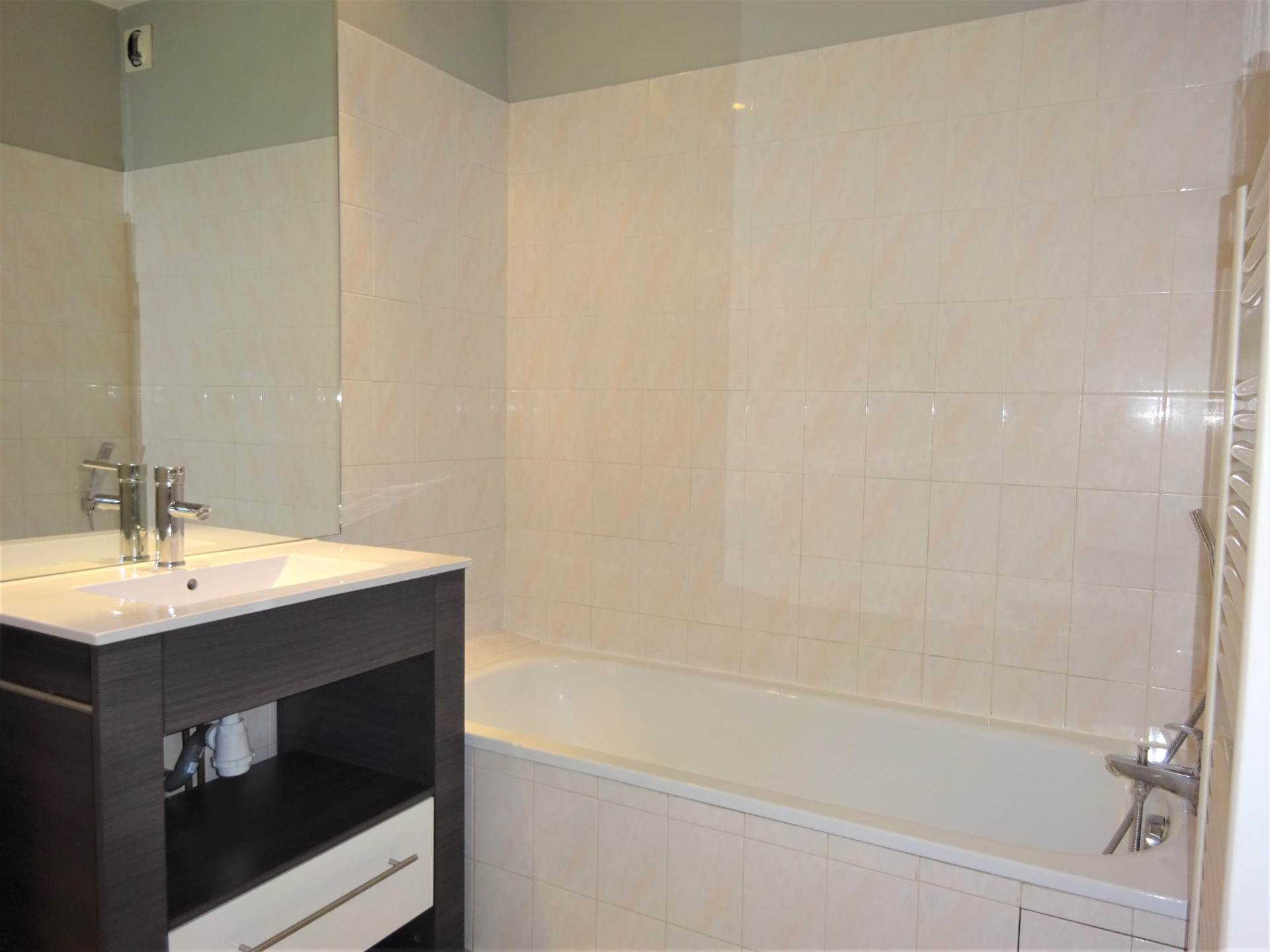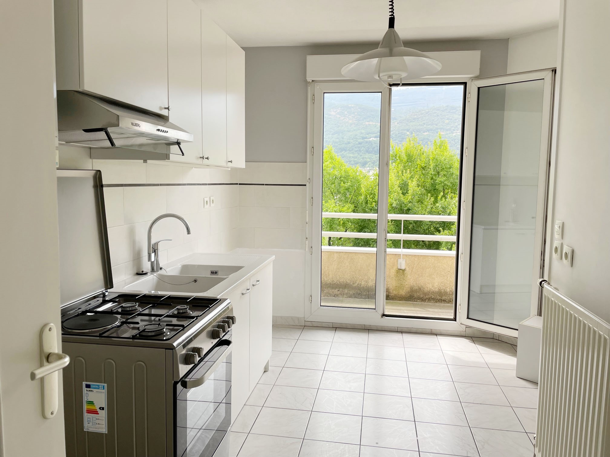 SEYSSINET PARISET, 123 rue du Progrès, agréable 3 Pièces + cuisine aménagée avec Garage de 63.91 m2 au 3ème et dernier étage avec ascenseur d'une petite copropriété récente de bon standing, comprenant une entrée avec placard aménagé, un salon et cuisine semi ouverte d'environ 28.51 m2 donnant sur une terrasse Ouest de 11.92 m2 offrant un panorama sans vis-à-vis sur le Vercors, un coin nuit desservant deux chambres dont une avec placard et une avec accès terrasse, une salle de bains, wc séparés. Chauffage individuel gaz. A proximité immédiate de l'école élémentaire rue de l'industrie, des transports en commun (tramway direction campus et centre ville de Grenoble), accès aisé à la voie rapide. Parking collectif fermé. Un garage en sous-sol est inclus dans la location. Loyer 843 € + provisions charges, entretien chaudière et eau froide 80 €. Honoraires de location 644.85 € + frais d'état des lieux 193.64 €. Dépot de garantie : 843€. Disponible à partir du 16/02/2026.