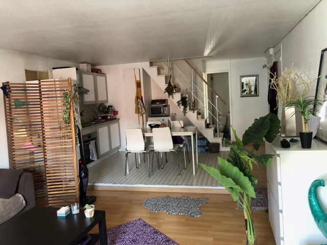 A VENDRE : 30 rue Condorcet à Grenoble - T3 duplex, dernier étage comprenant une entrée ouverte sur la cuisine équipée et le séjour. Au meme niveau une chambre et un wc.