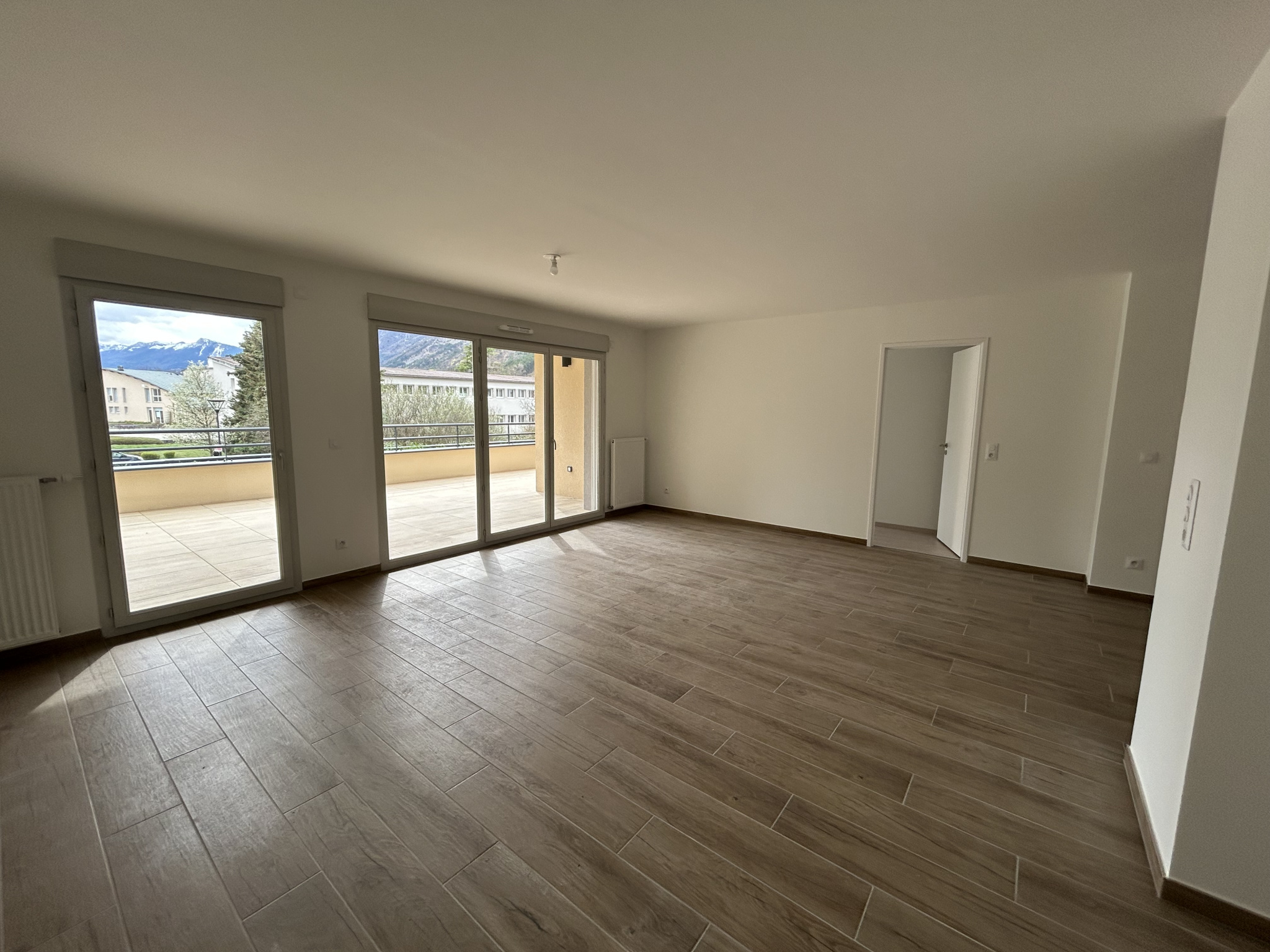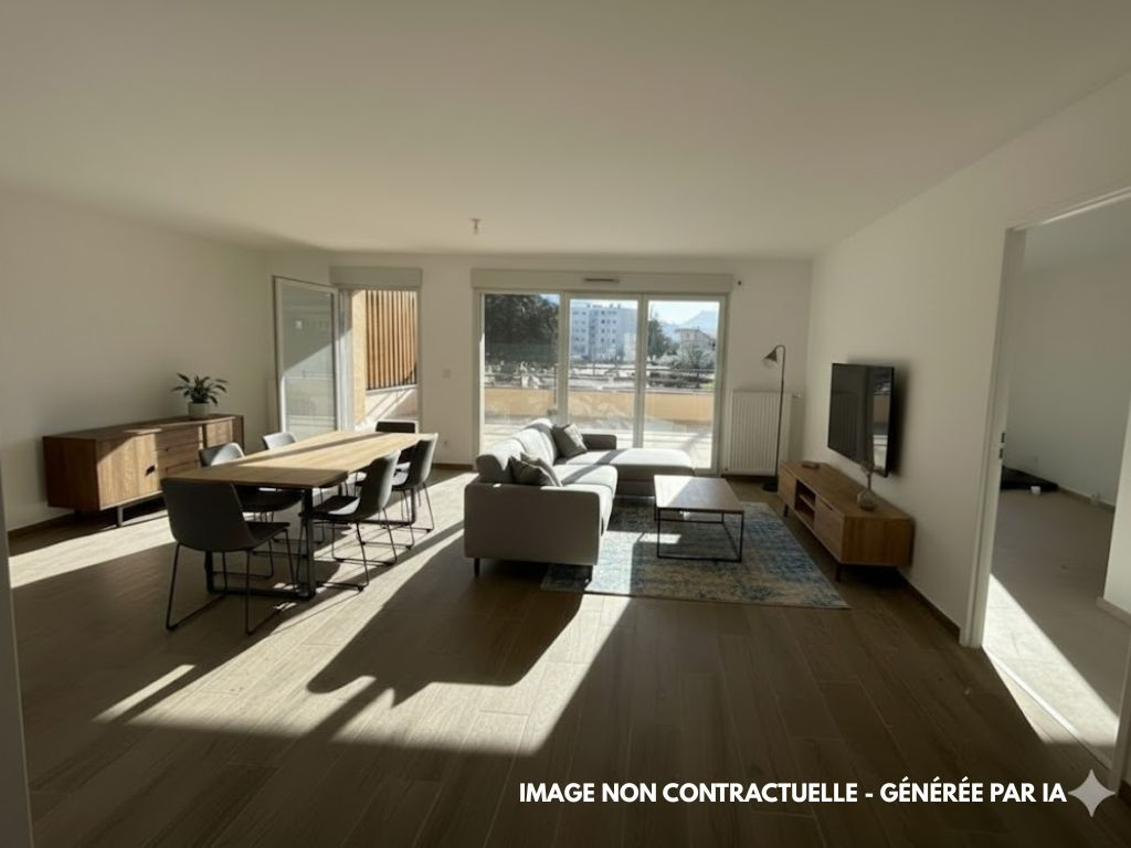 Découvrez ce charmant T4 de 83.80 m2 dans notre résidence Le Gustave situé au 19 rue Gustave Guerre à VIF, à deux pas du centre-ville et des commodités, cet appartement se compse d'un hall d'entrée avec placard, d'un séjour avec cuisine ouverte de 30.75 m2 s'ouvrant sur une belle terrasse de 30.80 m2 avec vue dégagée sur les montagnes plein SUD. Il y a également une salle de bain avec WC indépendant et 3 chambres de 9.55 m2, 10.35 m2 et 13.75 m2 avec salle d'eau privative. Profitez de prestations soignées et avantageuses telles qu'un ascenseur, un chauffage individuel au gaz et la possibilité d'obtenir un garage fermé en sous-sol.